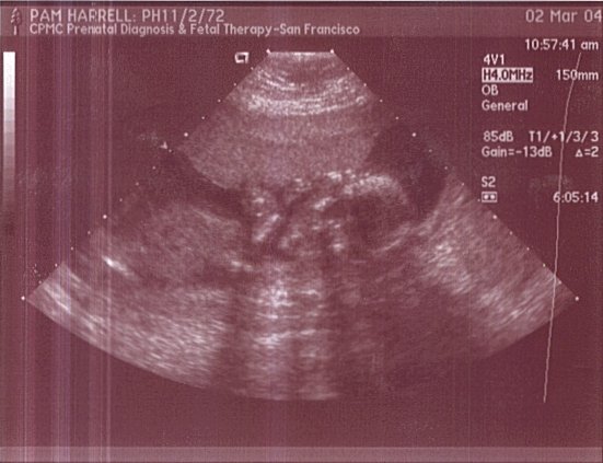 This is pretty much a full body shot from the front. A little difficult to distinguish, but limbs and head are visible. Her hands are lifted up to her face. This was taken on March 2, 2004.